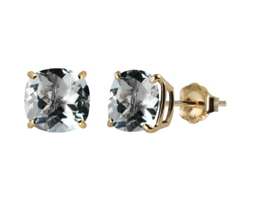 Add a pop of color to your everyday earrings with the 10k Yellow Gold Checkerboard Cushion Aquamarine Gemstone Stud Earrings. The cushion-cut aquamarine stone delivers the look of luxury with its cushion-cut shape. The 4-prong setting shows off the beautiful architecture and rich color of the stone. The aquamarine hold 1.80 cttw. A playful accessory for day or night. Simple classic gemstone stud e