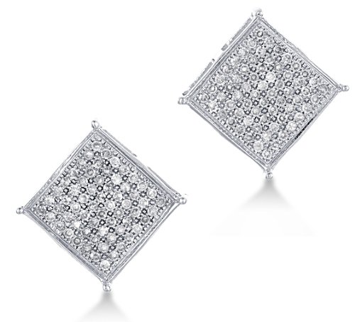 Order Now 10k White Gold Diamond Ladies Womens Mens Micro Pave Set Studs Round Cut Square Princess Shape Diamond Earrings (1/2 cttw)